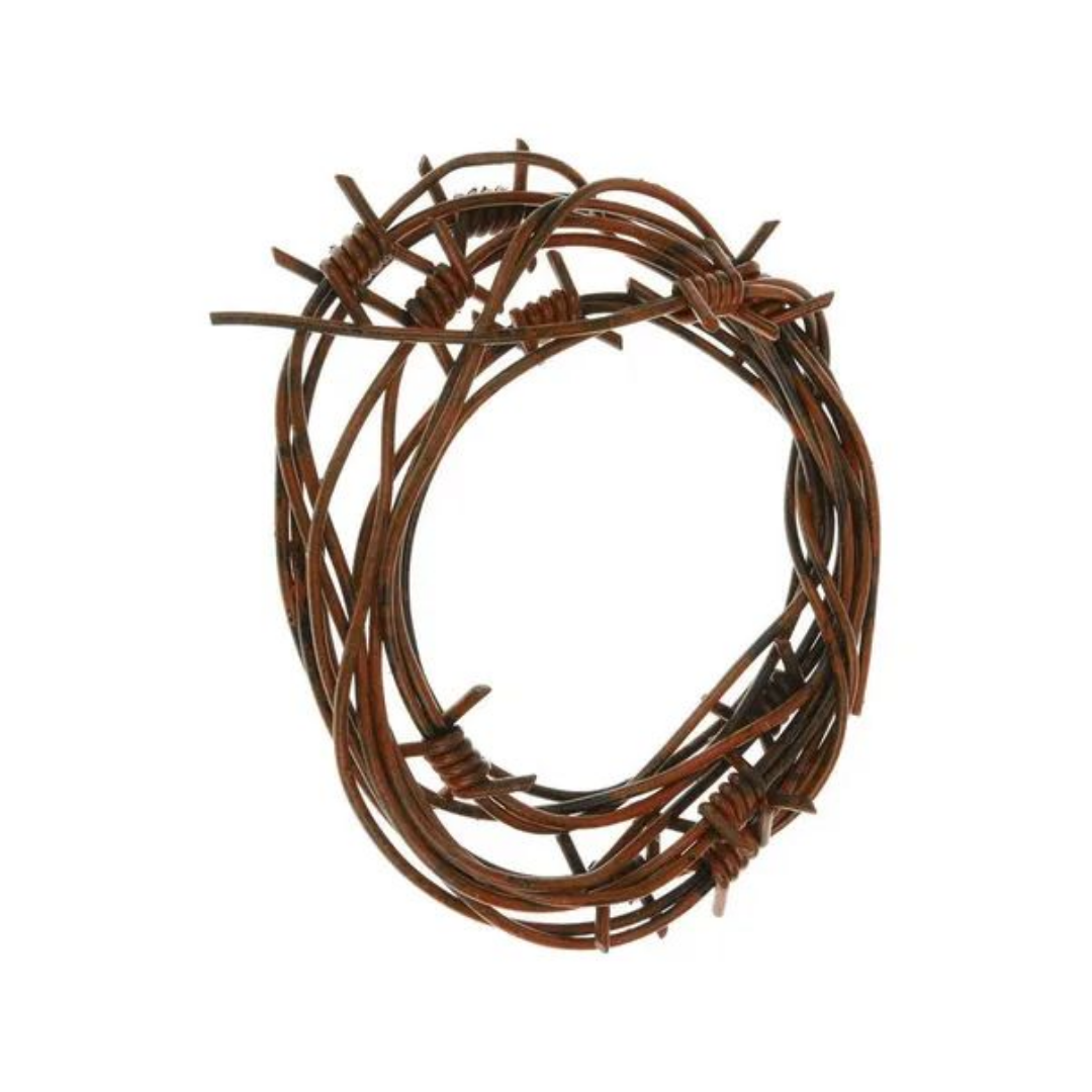 Dale un toque rudo y original a tu disfraz con este alambre de púas (simulado). Flexible, seguro y ligero, ideal para disfraces de prisionero, zombie, punk o temáticas oscuras. ¡Impactante y sin peligro!
