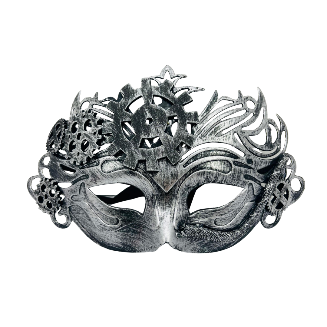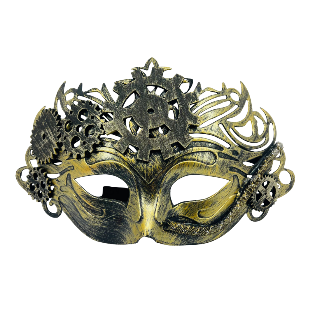 Antifaz estilo androide con diseño de tuercas y acabado metálico. Disponible en color dorado y plateado. Ideal para disfraces futuristas, robóticos o temáticos. Talla única con ajuste cómodo.