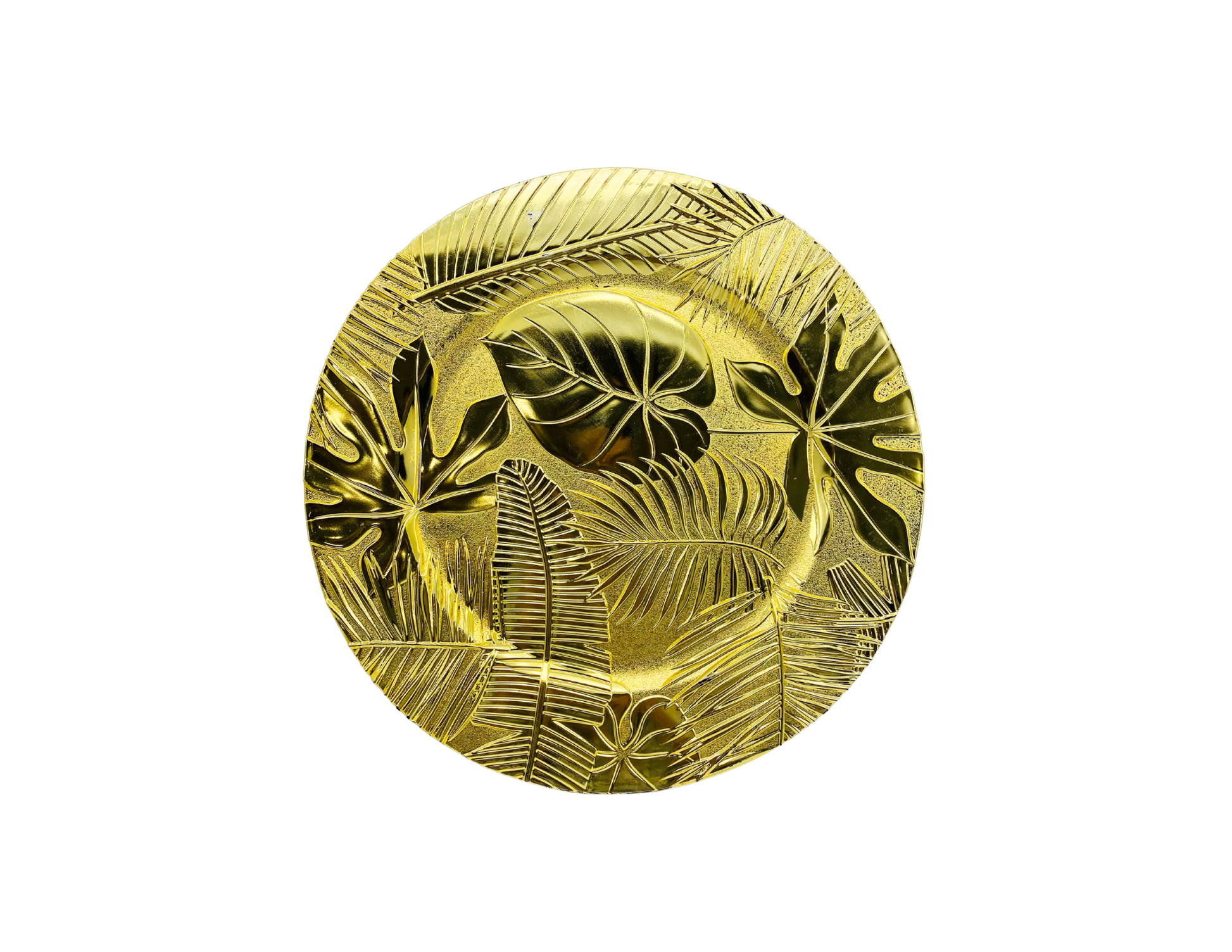 Bandeja dorada redonda con hojas grabadas