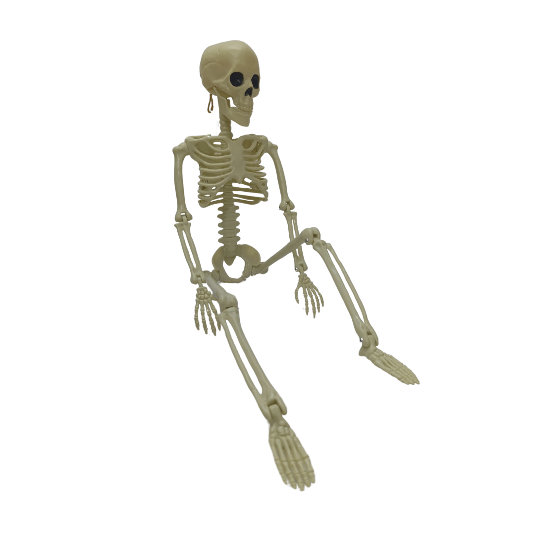 Figura decorativa de esqueleto en tamaño grande y pequeño, ideal para ambientar espacios en Halloween. Su diseño detallado lo convierte en el centro de atención de cualquier decoración espeluznante.