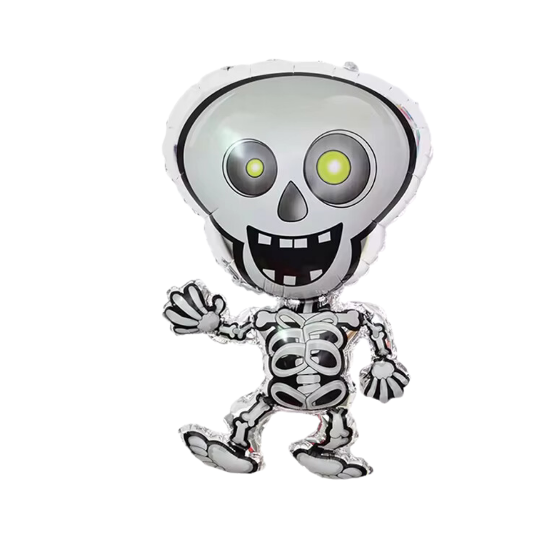 Dale vida a tu fiesta con este divertido globo metalizado en forma de esqueleto! Ideal para decorar espacios con un toque simpático.