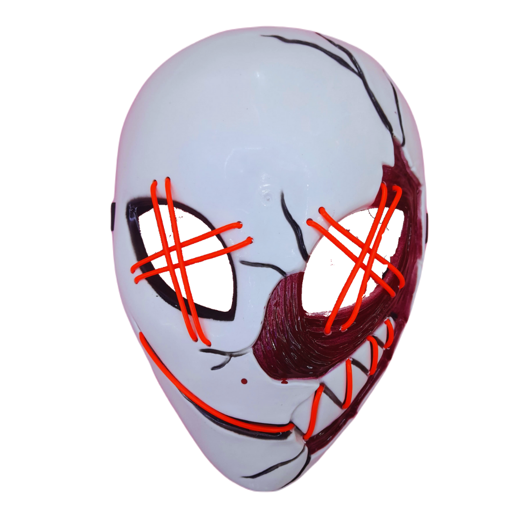 Máscara blanca estilo Jack con luces LED , perfecta para Halloween y fiestas nocturnas. Diseño llamativo, ligera y con ajuste cómodo.