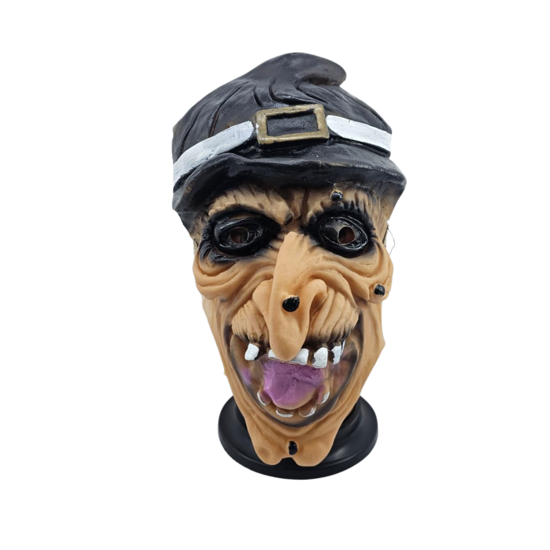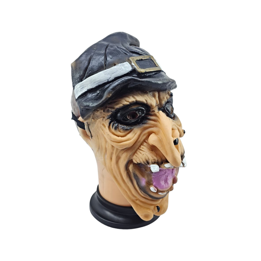 Máscara de látex bruja sencilla, con diseño clásico y detalles básicos. Ideal para disfraces rápidos, Halloween y eventos temáticos. Cómoda y fácil de usar.