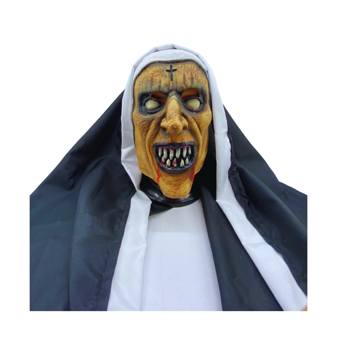 Impacta con esta máscara de monja ultra realista, fabricada con materiales de alta calidad para lograr un acabado fino, detallado y espeluznantemente auténtico. Cada arruga, sombra y expresión ha sido cuidadosamente diseñada para crear una apariencia que parece sacada directamente de una película de terror.
