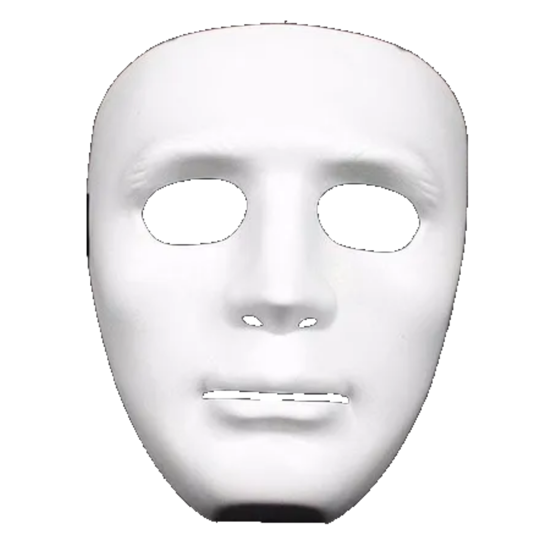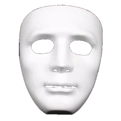 Máscara de pasta estilo mimo, disponible en color blanco y negro. Perfecta para halloween, disfraces artísticos y eventos culturales. Ligera, resistente y cómoda de usar.