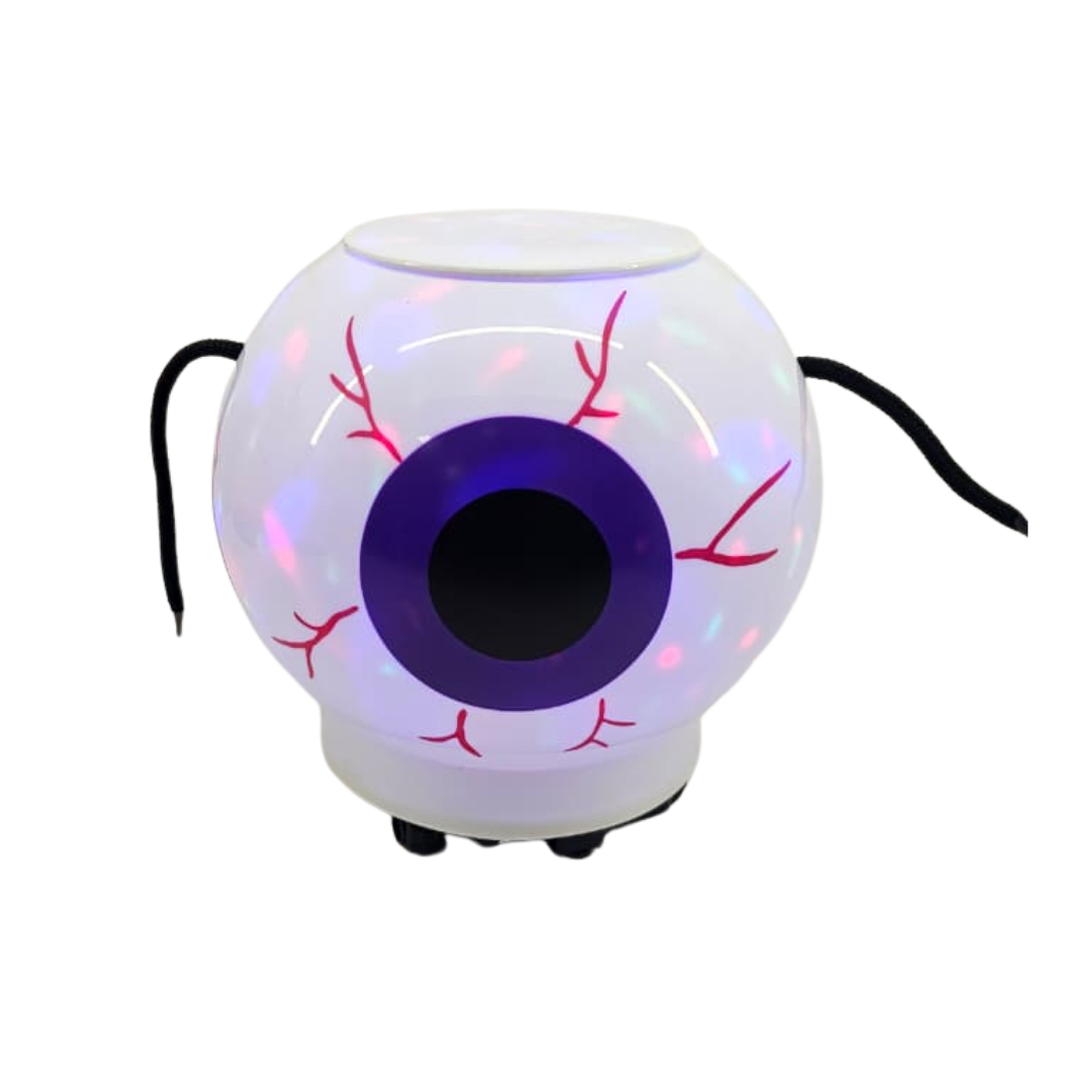 Impactante ojo decorativo que se mueve y emite luces, creando un efecto llamativo. Ideal para complementar decoraciones de terror, manualidades animadas o disfraces llamativos.