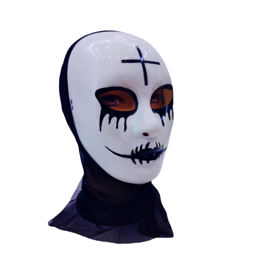 Misteriosa e impactante, esta máscara con cruz frontal incluye capucha integrada para un look oscuro y enigmático. Perfecta para Halloween, disfraces o personajes del terror.
