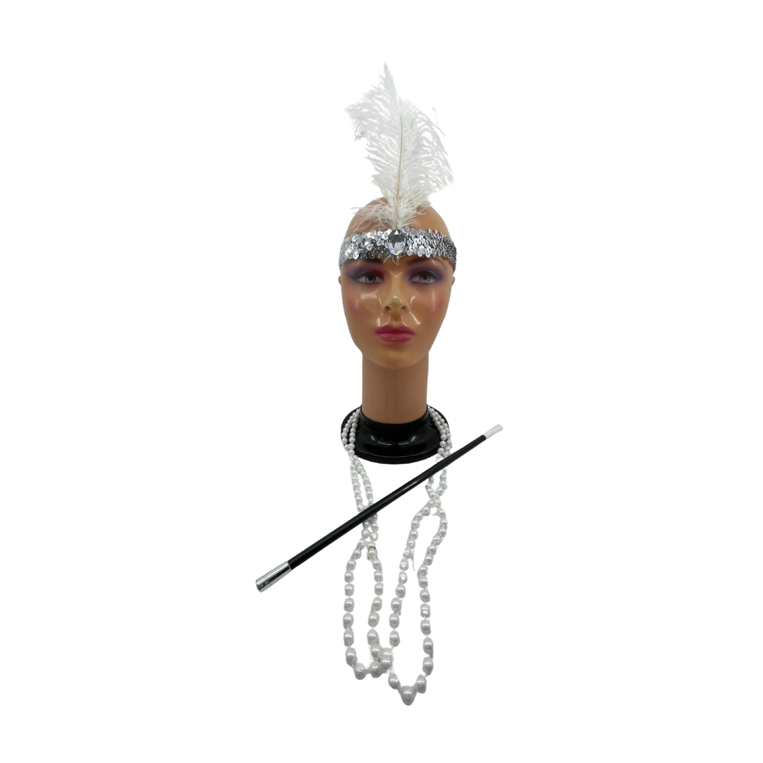 Estilo y elegancia de los años 20 en un solo set! Incluye bacalá de plumas, pipa larga decorativa y collar de perlas. Ideal para disfraces de charleston, fiestas temáticas o eventos retro. ¡Brilla con glamour vintage!
