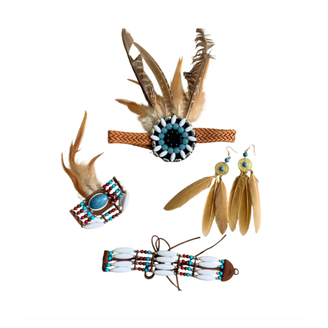 Completa tu look con este set de india, perfecto para presentaciones escolares, fiestas de disfraces o eventos culturales. Incluye accesorios inspirados en trajes tradicionales, ideal para un atuendo llamativo y representativo.