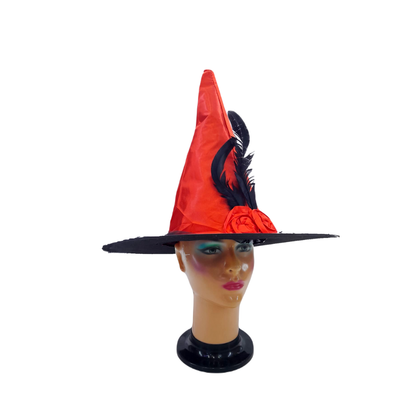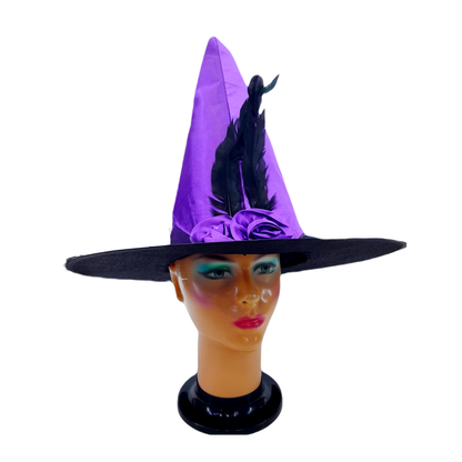 Este sombrero de bruja con diseño en punta y flor decorativa es el accesorio ideal para un look hechizante en Halloween. Perfecto para brujas sofisticadas que quieren destacar en fiestas, disfraces o eventos temáticos.