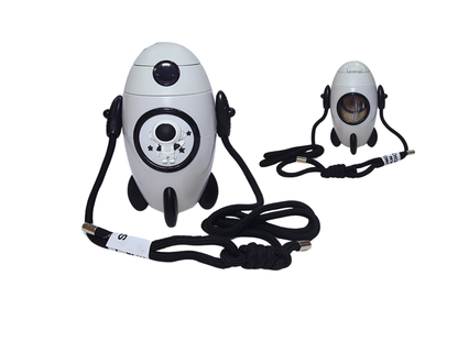 Termo plástico en forma de cohete, incluye pitillo y cordón para llevar.