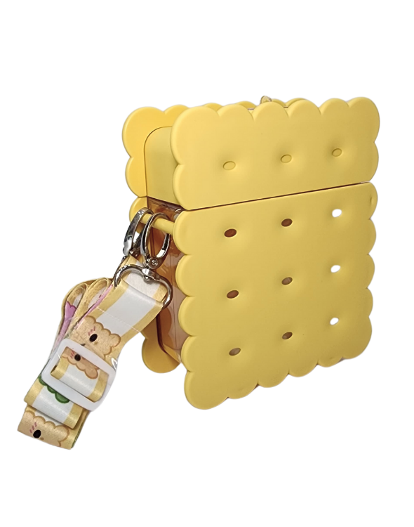 Termo en forma de galleta de plástico siliconado. Incluye correa para cruzarse