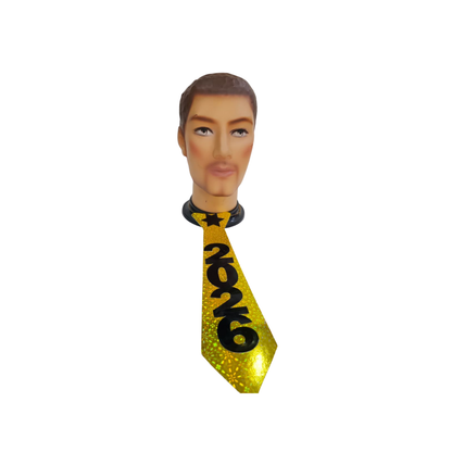 Paquete de 12 corbatas festivas con diseño 2026 en negro y dorado. Ideales para fiestas de Año Nuevo y celebraciones con estilo elegante y llamativo.